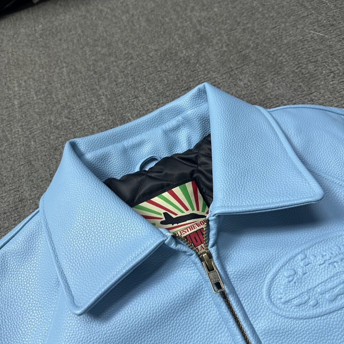 باستخدام جلد فاخر مُحبب، تُضفي سترة دا سكاي دايف بنيةً متينةً وعمرًا طويلاً. سحابها الأمامي الكامل، وياقة القميص الكلاسيكية، وأساورها وحزامها المُضلّع يُذكّران بالأسلوب الجامعي، بينما يُصنّفها تصميمها الجلدي ضمن فئة الفخامة العصرية. من الداخل، تُبرز بطانة الساتان المُبطّنة وبطاقة "دا سكاي دايف" الرسومية عمق التفاصيل - هذه السترة ليست مُصمّمة للمظهر فحسب، بل للارتداء.